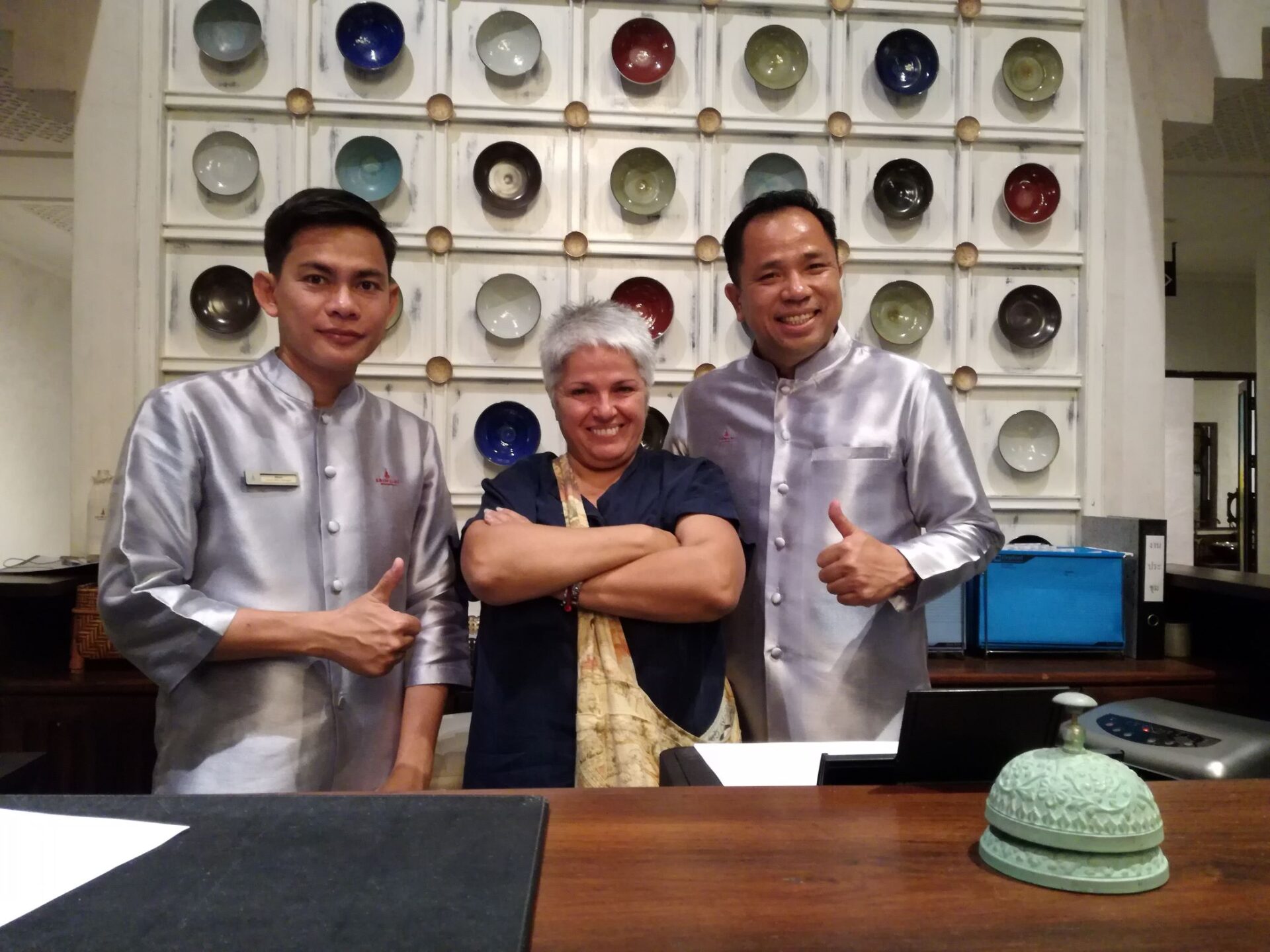 Să apreciem în primul rând faptul că mulți thailandezi vorbesc engleză, cel puțin în zonele unde au de-a face cu noi, turiștii; este aproape imposibil să nu ne facem înțeleși. Este însă foarte posibil să nu prea înțelegem noi ce zic ei, căci thailandeza e o limbă tonală iar engleza localnicilor împrumută ciripitul tipic (după mine, chiar asta face deliciul unei conversații – fără nicio ironie, îmi place mult cum sună). Ideea e că după câteva zile în Thailanda ne vom deprinde și nu ne vom mai mira cum își cântă frazele sau că nu-l pot rosti pe „r”, de exemplu.