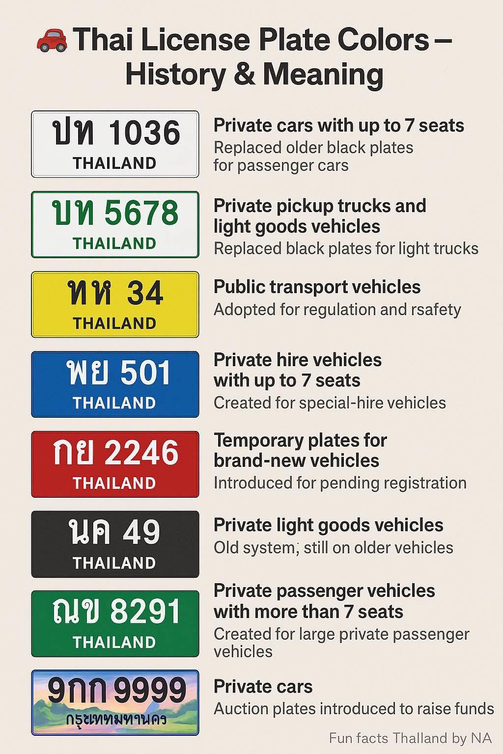 În Thailanda, culoarea plăcuțelor la mașini nu e deloc o chestiune de design aleatoriu – deși știm că thailandezilor le plac mult intervențiile cromatice.