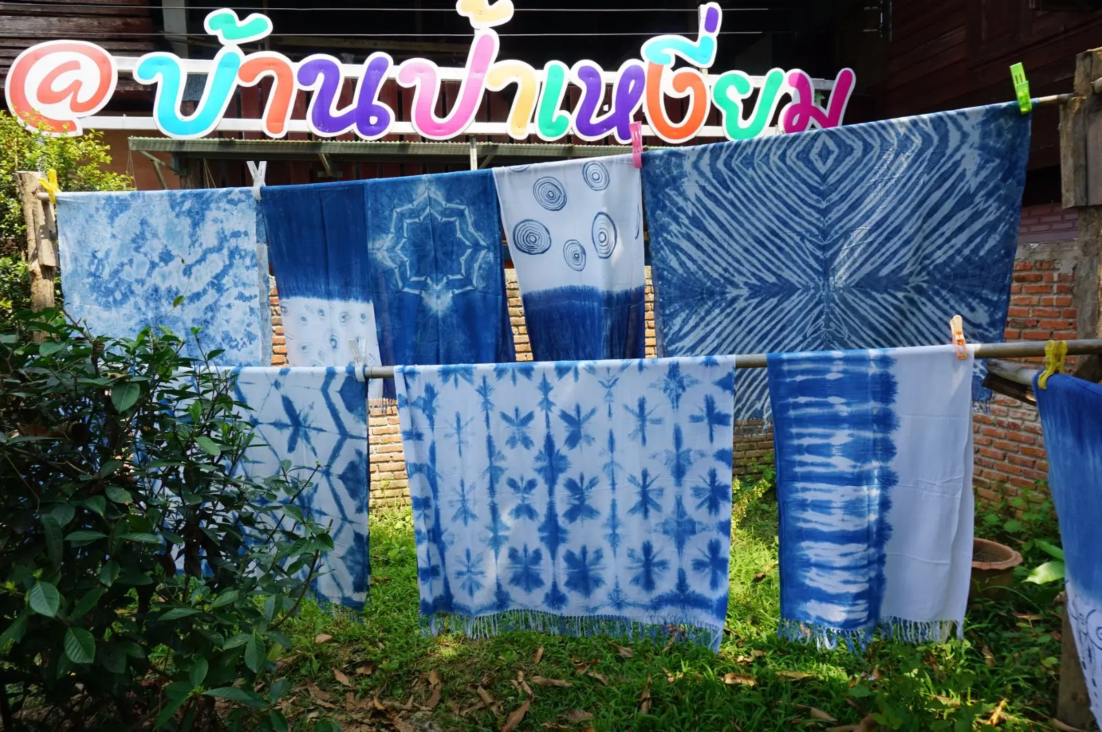 Să explicăm cum e cu albăstreala: Ban Thung Hong este o suburbie a orașului Phrae, faimoasă prin țesăturile din bumbac lucrate aici și vopsite cu indigo: Mo Hom. Prăvăliile debordând de haine în toate nuanțele albastrului natural se întind una după alta, având alături sau în spate atelierele de vopsit unde puteți învăța să vă faceți propriile eșarfe Pah Mor Hom. Una dintre ele, Baan Pa Ngiam, inclusă în programul de conservare a meșteșugurilor OTOP („Un district, un produs specific”) oferă workshopuri și cazare. Veți avea de unde alege pantaloni, cămăși, rochii și eșarfe vopsite manual cu miraculosul „indigo, the living colour” provenit din planta Indigofera Tinctoria pe care localnicii o cultivă de secole pentru proprietățile sale uimitoare.