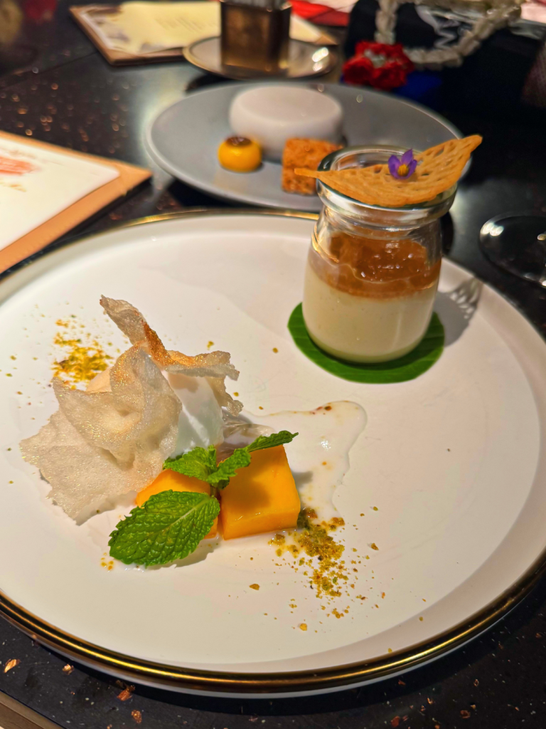 Nu va speriati de meniul foarte bogat afisat in fotografiile mele, pentru ca e doar un meniu de degustare. Iar tot ce „am degustat” aici a fost divin – desi trebuie sa recunosc ca dupa o zi atat de plina de surprize culinare incredibile – imi era greu sa ma mai las convins de maiestria unui chef, fie si de la un restaurant Michelin. Dar meniul a fost cu adevarat delicios, iar bucuria s-a accentuat si de faptul ca, la ora aceea mai tarzie, incepuse in sfarsit sa se racoreasca putin – ceea ce, dupa o zi super fierbinte, in aerul umed din Bangkok – a fost o adevarata binecuvantare.