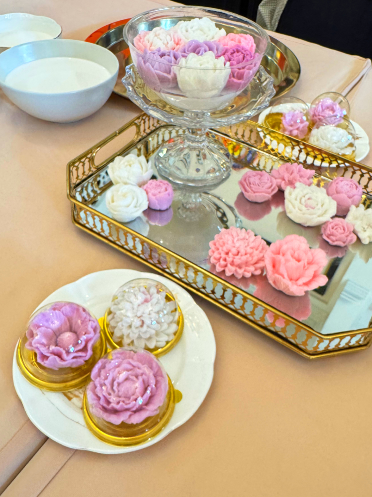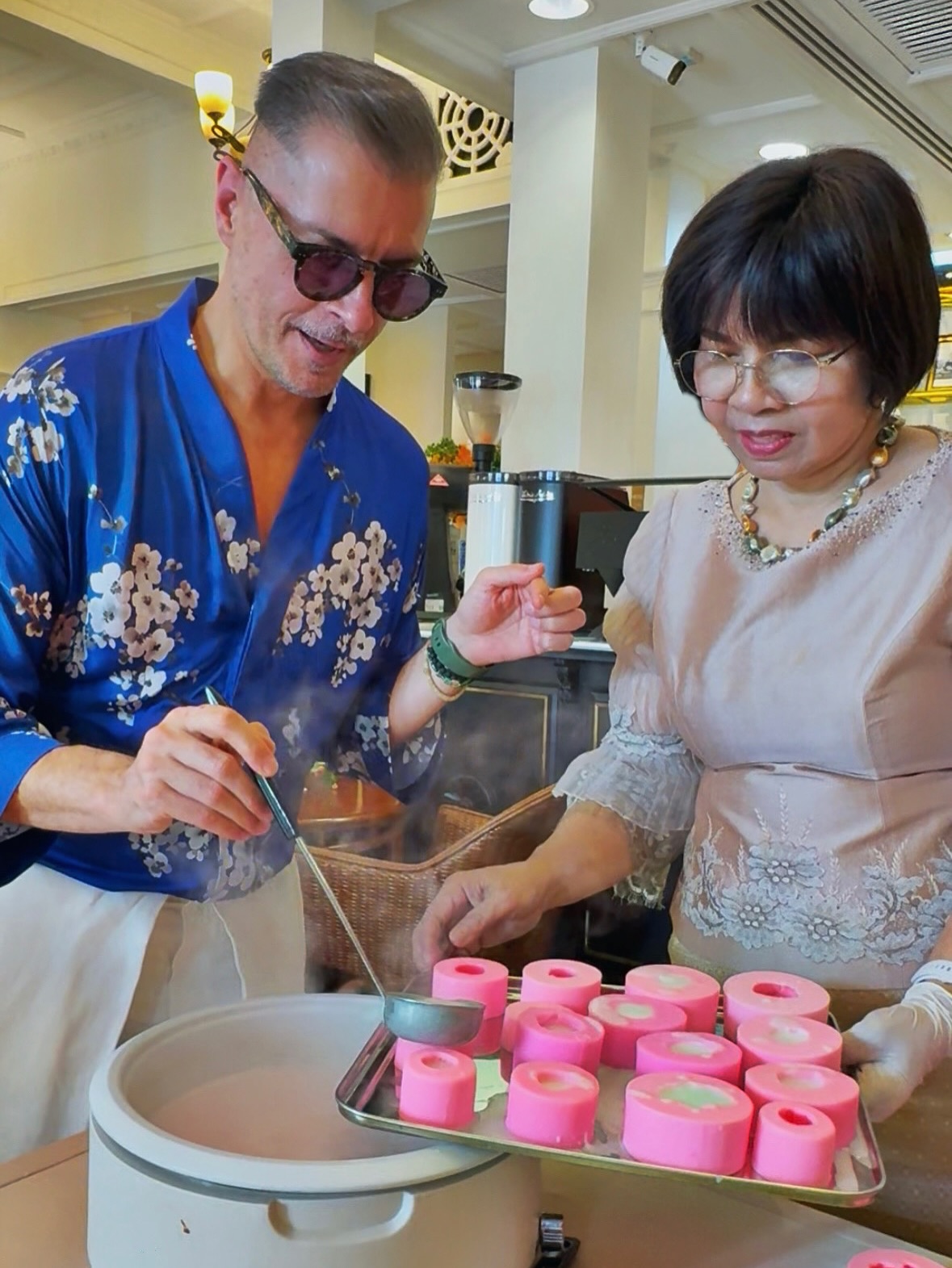Daaar… pentru ca acest meniu bogat trebuia completat si de un desert, am invatat, chiar acolo, sa preparam unul, de la doua doamne mai in varsta, foarte elegante. Un preparat simplu, facut cu lapte de cocos si arome de fructe, care arata spectaculos, ca o floare, dupa ce se coaguleaza in formele speciale in care este turnat. Pentru mine a fost foarte distractiv sa ma implic intr-o astfel de activitate, mai ales ca talentul meu la gatit este aproape inexistent. Doar ca de data asta chiar am reusit sa prepar ceva – e drept, sub privirile foarte atente ale celor doua bunicute thailandeze.