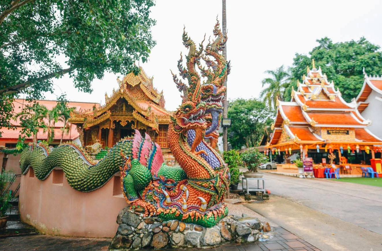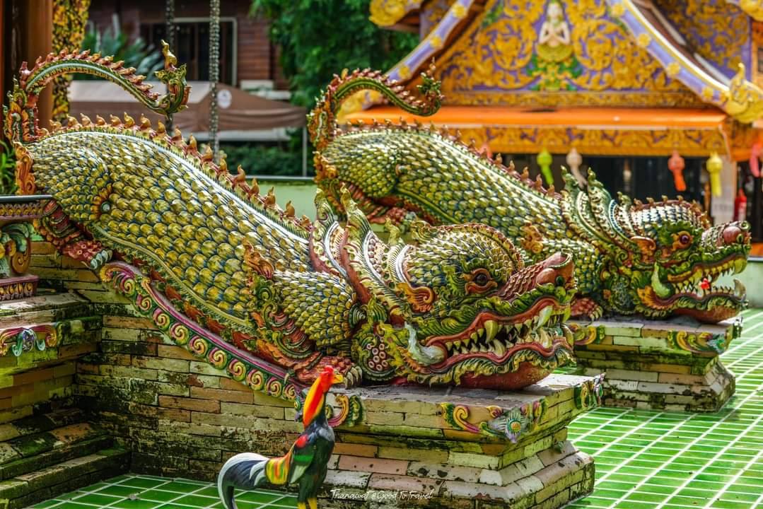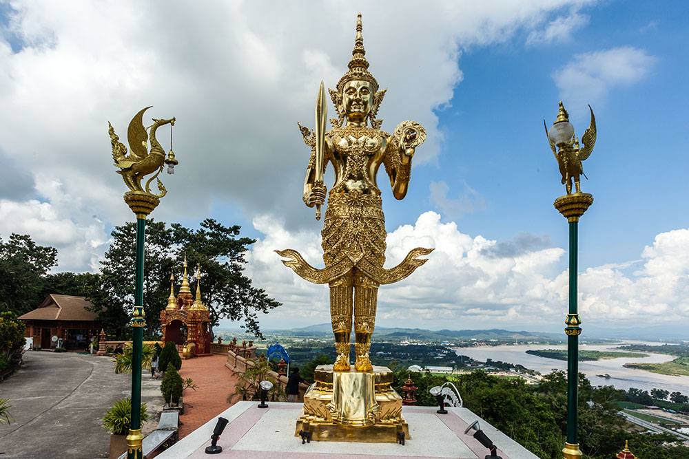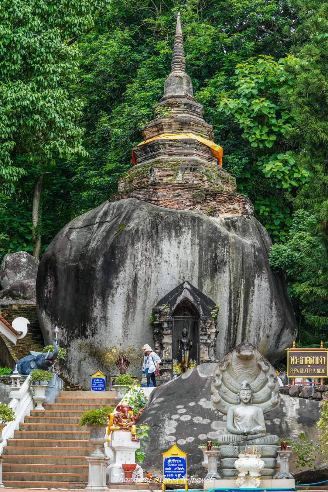 Suntem în provincia Chiang Rai, pe drumul către celebrul Triunghi de Aur. Numele templului vine de la stânca uriașă pe care se ridică „Phra That Pha Ngao”. „Pha Ngao” se traduce prin „umbra stâncii” – și, sincer, îți dai seama imediat de ce: atunci când soarele străpunge printre nori, bolovanul seamănă cu o pagodă și aruncă o umbră monumentală. Perfect pentru instagram, dar cu un filtru natural.