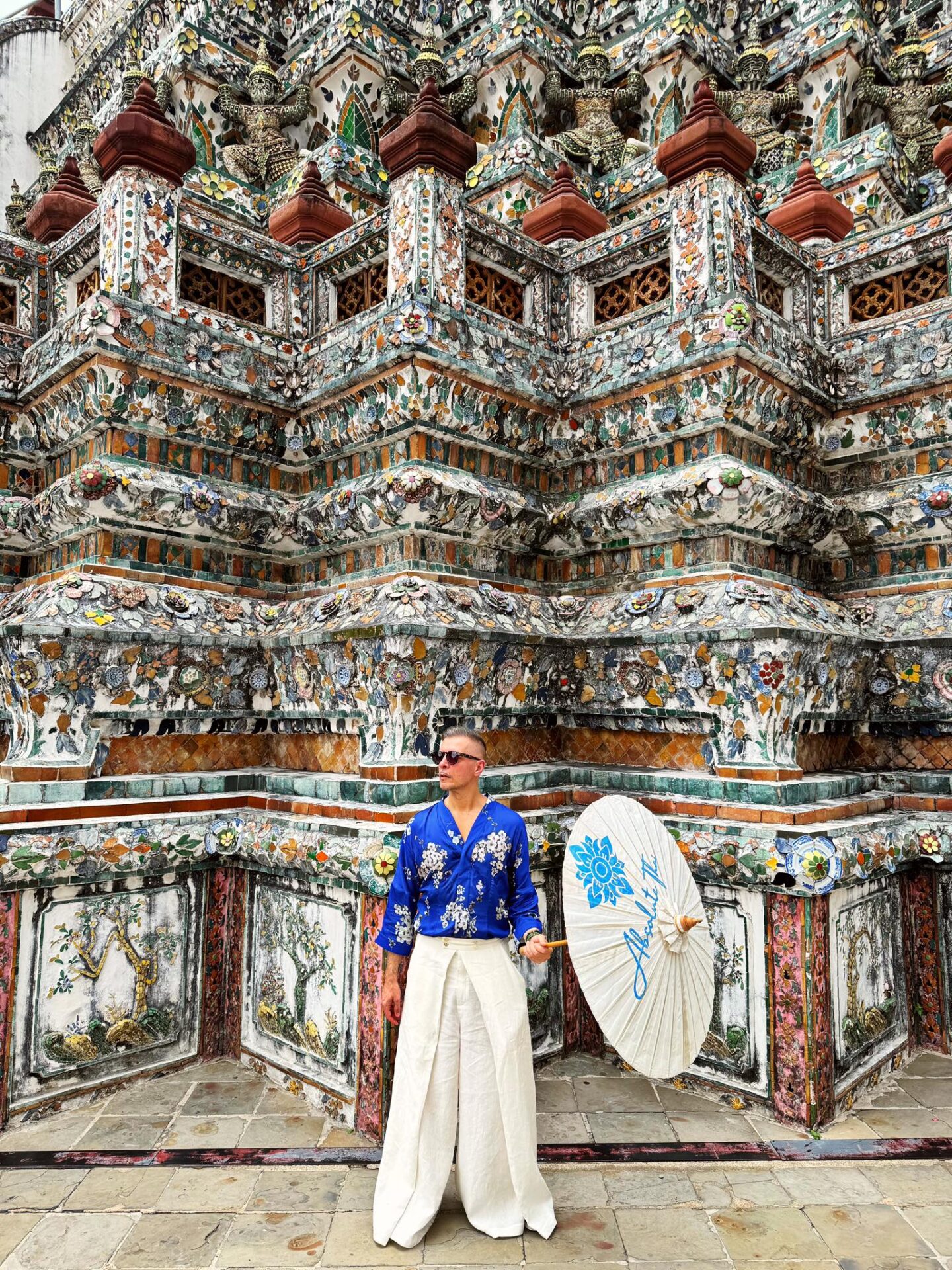 Eu m-am bucurat foarte tare ca am reusit sa vizitez, in sfarsit, Wat Arun. Chiar daca era o multime de turisti zumzaitori in curtea templului sau pe scari, tot am reusit sa gasesc cateva clipe in care sa ma linistesc si sa ma bucur de splendoarea acestei constructii. Un templu pe care l-am admirat de atatea ori din departare, mai ales ca noaptea el straluceste de-a dreptul pe malul raului Chao Phraya, fiind luminat foarte spectaculos, si pe care acum am avut ocazia sa-l explorez pe indelete. Si, poate datorita tinutei mele adecate, am simtit cumva ca am intrat mai usor in povestea acestui loc magic. I-am admirat detaliile minunate din portelan, i-am ascultat legendele si l-am indragit pe loc. Cu speranta ca voi reveni aici, o sa las noaptea sa se astearna peste Wat Arun, in asteptarea unui nou rasarit de soare care sa-l faca sa renasca.