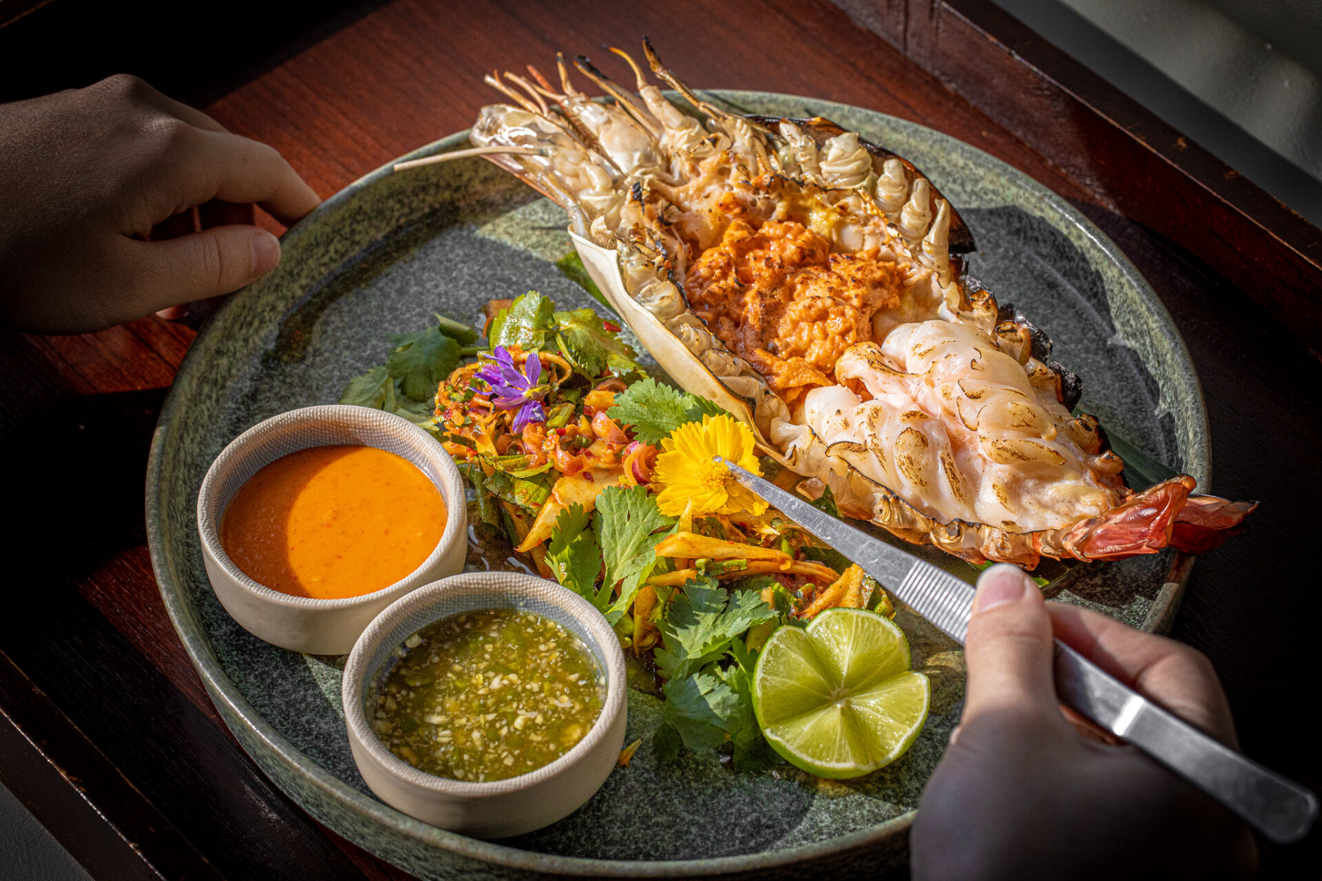 Sa continuam cu restaurantele – si am sa incep cu faimosul Cote by Mauro Colagreco, restaurant cu doua stele Michelin, ce aduce reinterpretarea bogatei bucatarii italiene in inima Bangkokului. Deschis de miercuri pana duminica, are meniuri de pranz sau cina formate din patru preparate gandite de chef-ul italian, cu preturi/meniu pornind de la 3300 de Baht (aproximativ 87 Euro). La acesta mai puteti adauga un meniu de pairing de vinuri sau de bauturi non-alcoolice, care mai adauga inca 3000 de Baht – respectiv 900 de Baht – la nota finala. Chiar si asa mi se pare ca preturile de aici sunt foarte prietenoase, tinand cont de prestigiul incredibil de care se bucura acest restaurant! Iar interiorul elegant cu detalii atent gandite, panorama fluviului si preparatele delicioase o sa va transforme cina aici intr-o experienta de neuitat!