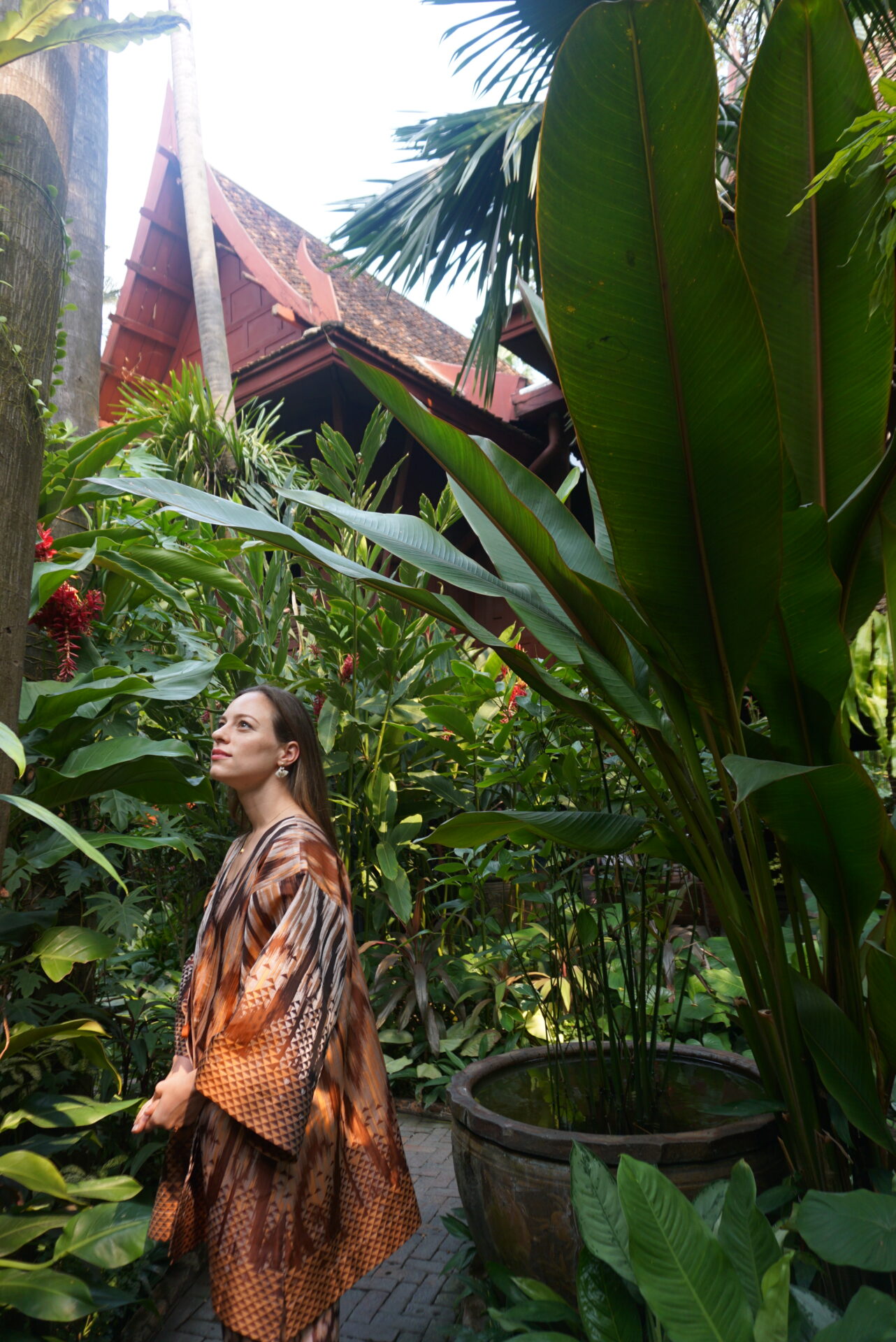 O călătorie în Thailanda nu e completă fără o incursiune în cultura și tradiția țesăturilor din mătase ca parte a profilului național siamez. Alina-Maria de Roumanie se declară mare fan al mătăsii. „Dressing-ul meu conține cam 70% articole mătase”. „Inclusiv fețele ei de pernă”, completează discret Nicolae al Românie; așadar, o vizită la muzeul legendarului Jim Thompson, cel care a reînviat industria mătăsii în anii ʼ50, era inevitabilă. „Știam de brandul Jim Thompson de mai mulți ani. Și am ținut neapărat să ajung la casa memorială, să-i cunosc de aproape povestea, să-i admir colecțiile de artefacte. Am vrut să mă îmbrac în hainele tradiționale de la ei, ca o mare iubitoare de mătase ce sunt. Ceea ce am trăit acolo, în Paradisul mătăsii, a fost o experiență unică, oferită de stafful lor.” Alina-Maria probat ținutele din magazinul muzeului, a pozat cu eleganță, entuziasm și bucurie autentică – mai cu seamă că ambianța acelui loc unic e ca o teleportare în timp și spațiu, în acea falie de istorie unde cultura, meșteșugul, rafinamentul și valoarea colecțiilor de artefacte siameze se îmbină magic.